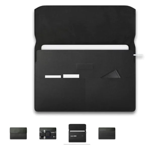 Designed for 13" laptops and tablets, built to make your workday seamless and stress-free. Conveniently store your cables, chargers, pen, mouse, notebook, and more without the added bulk.FeaturesProtective microfiber paddingCustom elastic storage & hidden pocketsSecure magnetic closureEnvironmentally certified leatherSlim expandable profileSPECIFICATIONSDimensions0.6 x 14 x 10 in (1.5 x 35 x 25.5 cm)CompatibilityFits 13" laptops and tabletsStorageCables, chargers, pens, mouse, notebooks, A4 paper, cardsProtectionSoft microfiber lining & paddingChargingCut-out indents for charging on-the-goLeatherPremium American hides by ECCOSustainableLWG gold-rated tanneries, DriTan™ technologyThe laptop sleeve stores all your daily essentials in a flexible, easy-access design. Elastic pockets show you if anything is missing, and secret pockets keep your cash, tracker and cards hidden. ALL AROUND PROTECTIONSoft microfiber padding on the inside, premium leather on the outside. This sleeve is a cozy blanket for your tech. The discrete magnetic closure keeps dust out and your essentials in, protecting them from scratches and dents.SLIM DESIGNIts smooth exterior allows for easy bag entry, while the nifty anti-slip feature in the custom elastic pockets make sure you don't lose anything on the move. Even when it's safe inside the case, our discreet indents allow you to charge your laptop or tabletLWG GOLD-RATEDPREMIUM LEATHEROur top-grain leathers are tanned under