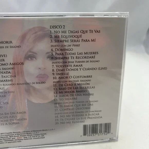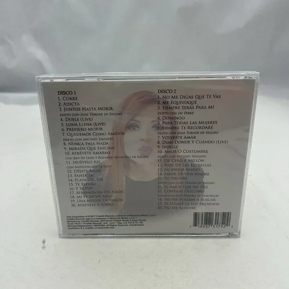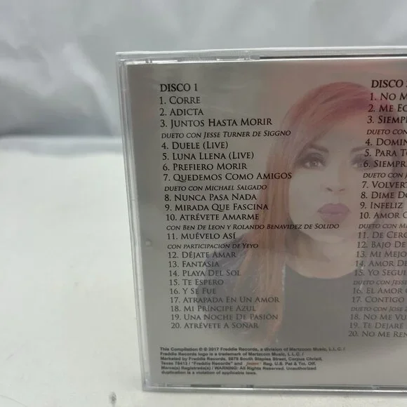 1-01Corre3:561-02Adicta3:321-03Juntos Hasta MorirFeaturing – Jesse Turner (3)Featuring – Jesse Turner (3)4:041-04Duele (Live)4:241-05Luna Llena (Live)3:581-06Prefiero Morir3:151-07Quedemos Como AmigosFeaturing – Michael SalgadoFeaturing – Michael Salgado3:441-08Nunca Pasa Nada3:211-09Mirada Que Fascina3:521-10Atrevete AmarmeFeaturing – Ben DeLeon, Rolando BenavidezFeaturing – Ben DeLeon, Rolando Benavidez3:301-11Muevelo AsiFeaturing – Yeyo (7)Featuring – Yeyo (7)3:251-12Dejate Amar4:061-13Fantasia4:021-14Playa Del Sol3:421-15Te Espero3:131-16Y Se Fue3:141-17Atrapada En Un Amor3:181-18Mi Principe Azul3:141-19Una Noche De Pasion3:281-20Atrevete A Soñar3:542-01No Me Digas Que Te Vas3:062-02Me Equivoque3:402-03Siempre Seras Para MiFeaturing – Jay PerezFeaturing – Jay Perez4:022-04Domingo3:482-05Para Todas Las Mujeres3:502-06Siempre Te RecordareFeaturing – Jesse Turner (3)Featuring – Jesse Turner (3)3:492-07Volverte Amar3:382-08Dime Donde Y Cuando (Live)4:402-09Infeliz3:182-10Amor O CostumbreFeaturing – Michael SalgadoFeaturing – Michael Salgado3:352-11De Cero A Millon3:432-12Bajo De Las Estrellas3:232-13Mi Mejor Amigo3:192-14Amor De Una Madre4:512-15Yo SeguireFeaturing – Jesse Turner (3)Featuring – Jesse Turner (3)3:512-16El Amor Que Me Das3:222-17Contigo Descubri3:552-18No Me Vuelvas A Buscar3:462-19Te Dejare La Luz Prendida4:022-20No Me Rendire3:43 Shipped the next day4/21/25