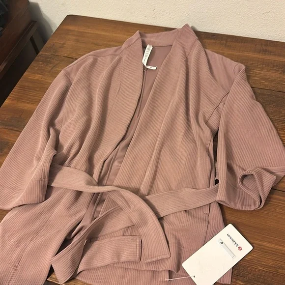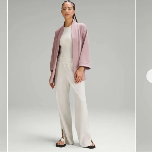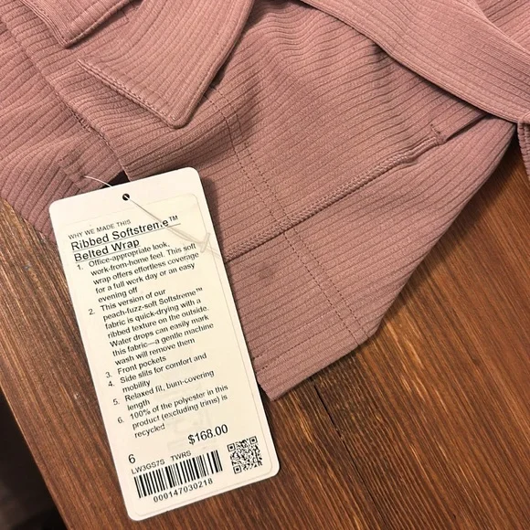 Office-appropriate look, work-from-home feel. This soft wrap offers effortless coverage for a full work day or an easy evening off.peach-fuzz soft, ribbed softstreme™ fabricPeach-fuzz soft, ribbed textureQuick-dryingMachine washable. Water drops can easily mark this fabric—a simple wash will remove them100% of the polyester in this product is recycled (excluding trims)Fabric is derived from responsibly sourced wood-based materials that support the protection of ancient and endangered forestsfeaturesFront pocketsSide slits for comfort and mobility