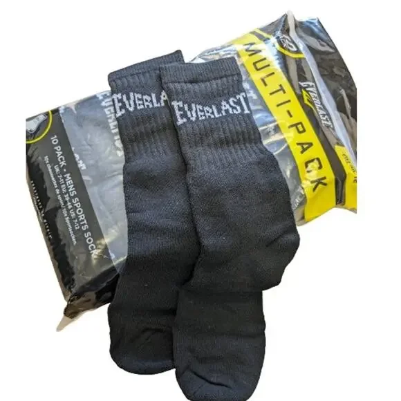Mens Everlast 10-pack Crew Socks-Black-Size US 7-12-NWT-C162Condition: New With TagColor: BlackSize: 7-12 US MenNote: Correct Size is 7-12 but not in the drop down option.PRODUCTS:All items are guaranteed 100% authentic, New With Tag, and unused, coming from a smoke-free and pet-free environment.PAYMENT:Immediate payment required. Notify us of payment delays to avoid order cancellation.SHIPPING:Items inspected and carefully packaged for safe delivery. Same-day shipping if bought before 5 pm EST, otherwise next business day. Address changes via message only before shipment. Correct address responsibility of buyer; incorrect addresses incur 20% restocking fee. RETURNS:Returns Not Accepted QUESTIONS? PLEASE ASK BEFORE BUYINGPLEASE CHECK OUT OUR OTHER ITEMSTHANK YOU FOR LOOKING!