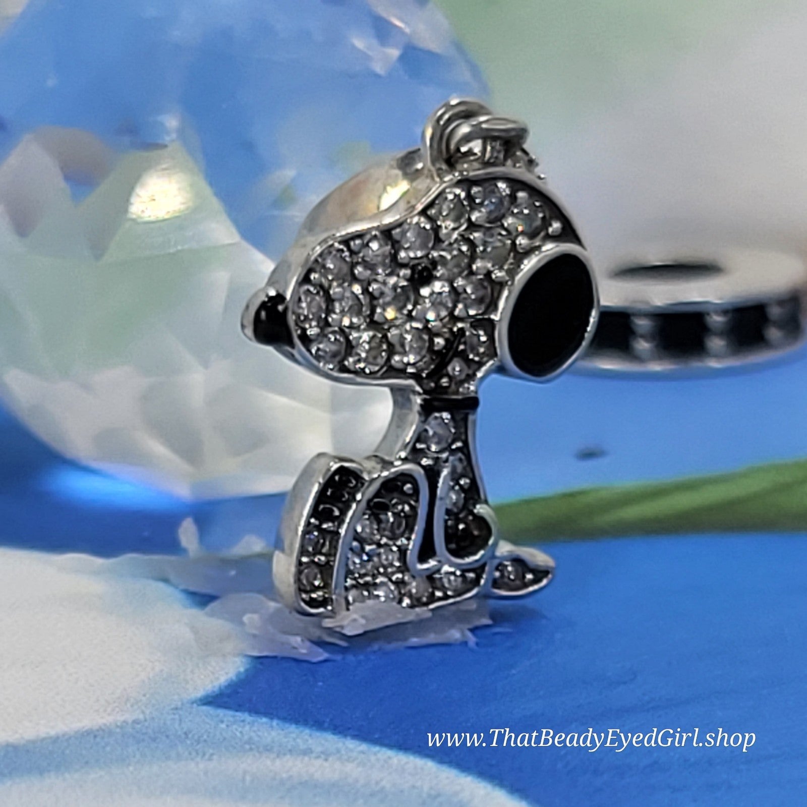 Set includes one Crystal snoopy Bead one Crystal snoopy Dangle one black Crystal spacer all Sterling silver