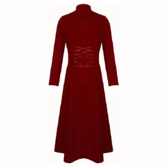 Men’s Gothic Tailcoat Jacket Red Steampunk VTG Victorian CoatMen Red cotton tailcoat style jacket, with unique cutaway front which gives the appearance of a vest being worn beneath the coat. Fastening at the front with snap fastenings, with classic notched lapels featuring decorative snaps. Long pointed split tail to the rear, plus with decorative strap at the back. Complete with snap fastenings to each cuff and snap closure pocket flaps.
