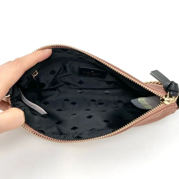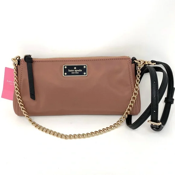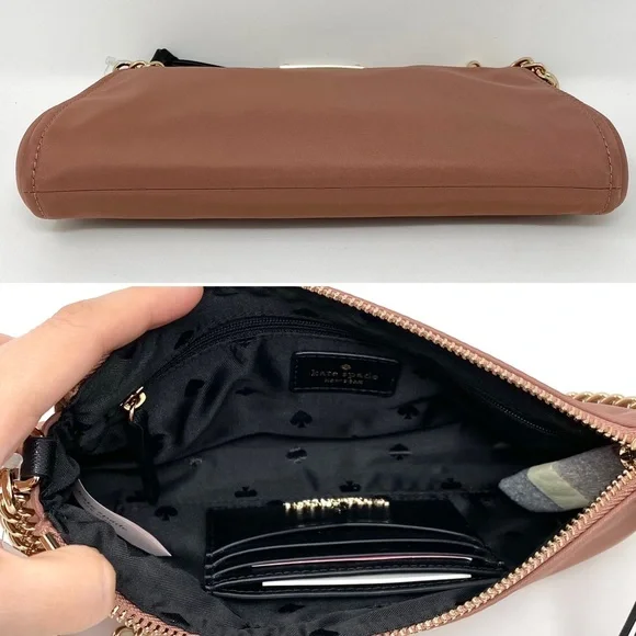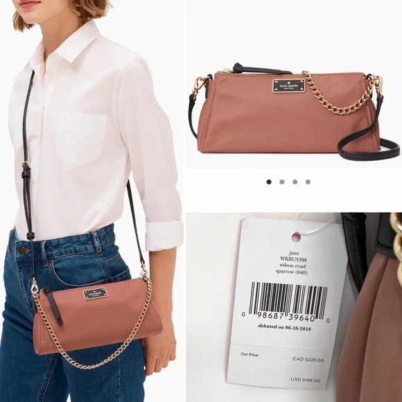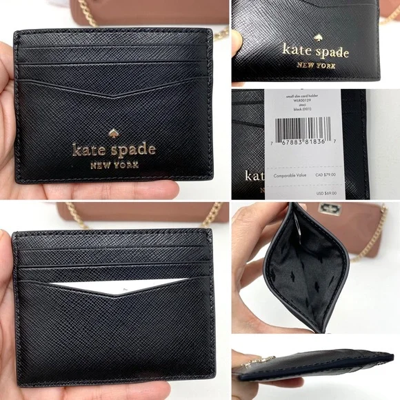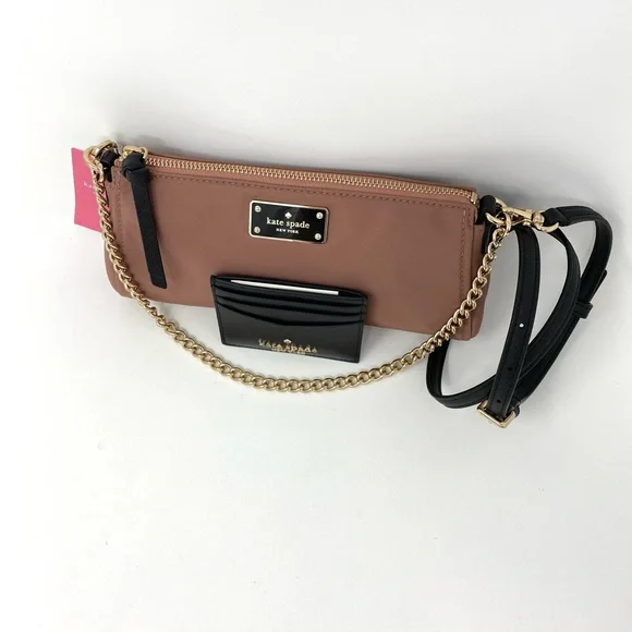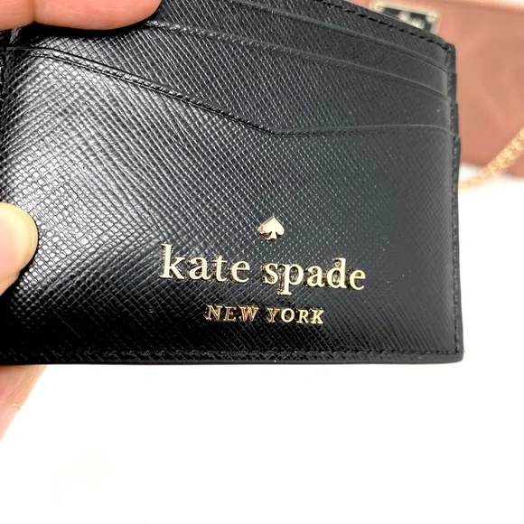 New Kate Spade wilson road jane crossbody & card holder* Firm Price Color Sparrow with Goldtone hardwarenylon material capital kate jacquard liningzip top closureInterior slip pocket and zip pocketSaffiano leather removable/ adjustable strap 24” DropAttached Chain strap 7 1/2 Drop10” L x 5” Hx 1 1/2” WStaci Small Slim Card HolderSaffiano LeatherColor Black 6 credit card slotsopen middle compartment3 7/8” L x 3" H