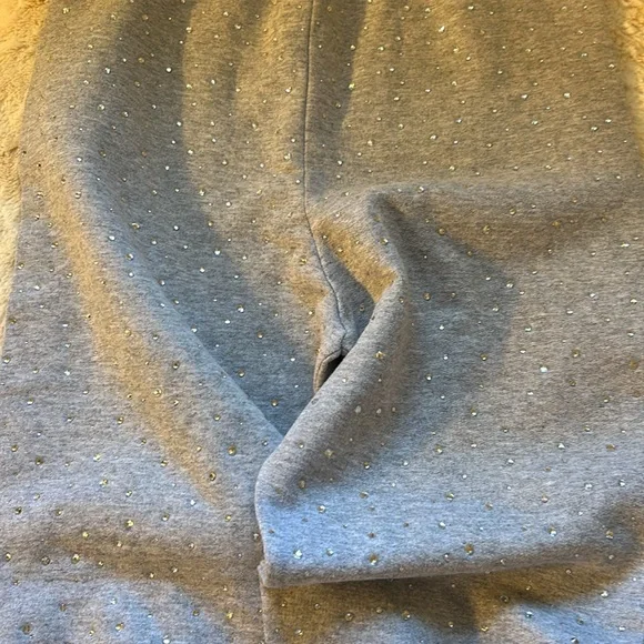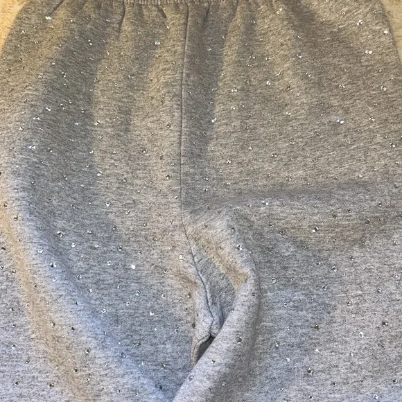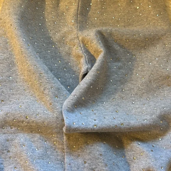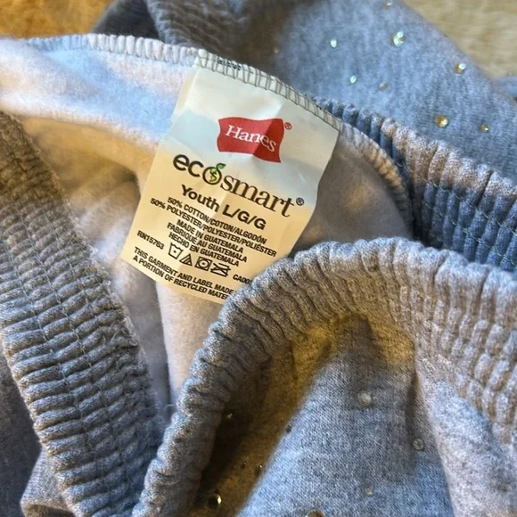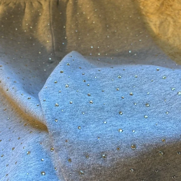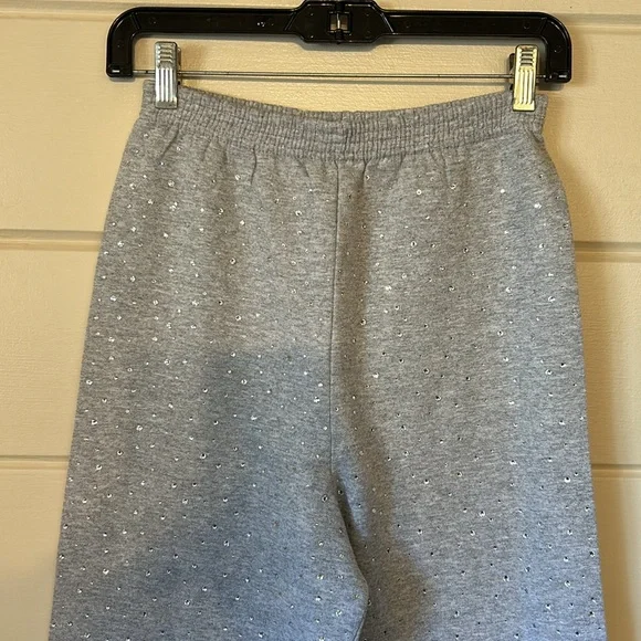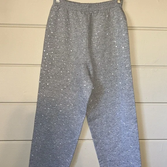 Youth Bedazzled Rhinestone Joggers – Size Large (Brand New, No Tags)Make a bold statement with these one-of-a-kind bedazzled joggers, featuring a stunning front completely covered in small, medium, and large machine-cut glass rhinestones. The dazzling rhinestones add eye-catching sparkle and dimension, while the back remains plain for comfort and balance. These joggers are perfect for anyone who loves to stand out.• Size: Youth Large• Condition: Brand new, no tags• Color: Gray• Front: Fully embellished with machine-cut glass rhinestones (small, medium, and large)• Back: Solid gray (not bedazzled)• Waistband: Elastic• Cuffs: Elastic at ankles• Rise: Approximately 13.75 inches (high-rise)• Waist: Approximately 24 inches• Inseam: Approximately 24.5 inches• Fit: Relaxed, statement pieceThese rare, custom bedazzled joggers are perfect for photoshoots, dance performances, special events, or adding sparkle to casual wear. Pair with a simple tee or hoodie and sneakers to let the rhinestones shine.#OneOfAKind #RhinestoneJoggers #YouthStyle #StatementPiece #CustomEmbellished #Dancewear #PerformanceOutfit #GrayJoggers #BedazzledPants #YouthLarge #HighRiseStyle #SparkleStyle