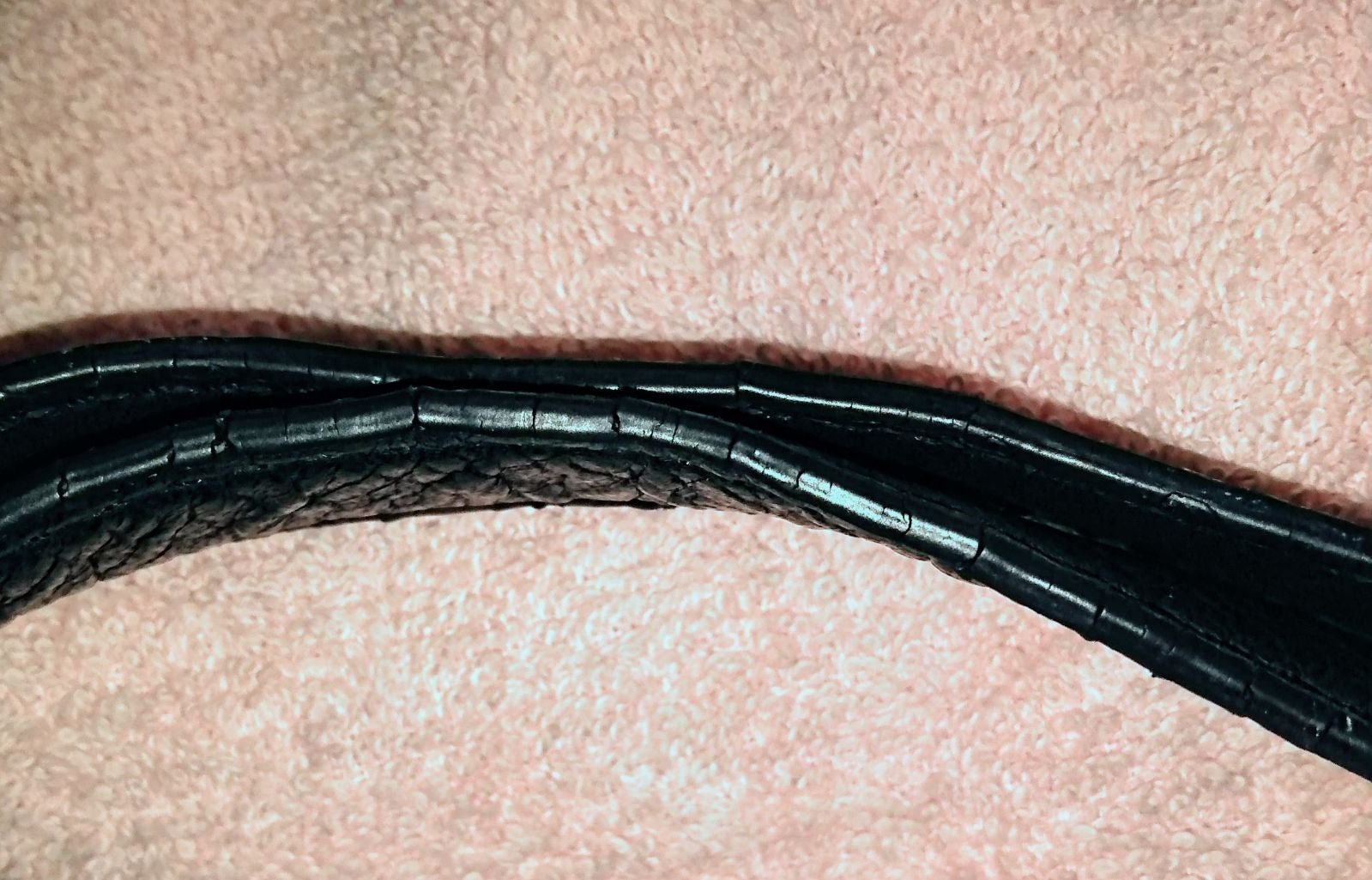 Black Michael Kors satchel, handle bag. Very clean new looking, no flaws, tears, stains of interior or lining. Top of handles show a slight crackling on painted edges .Leather is nicely supple and beautiful.Not flimsy.Length is about 15 1/2 inch and height with handles about 16".