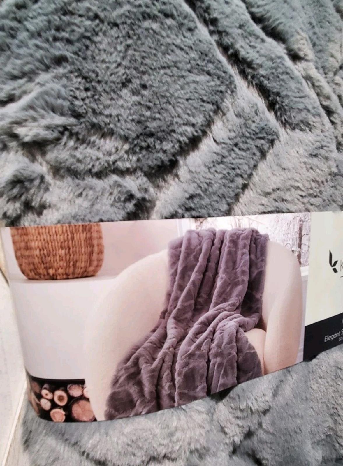 The NEW Koolaburra By Ugg Faux Fur Throw Blanket in Gray Candice is a luxurious and stylish addition to any bedroom. Made from high-quality faux fur material and featuring a unique tile textured pattern, this throw blanket adds a touch of elegance to your home decor. Measuring 50" x 70", it is the perfect size to cozy up with in colder weather.