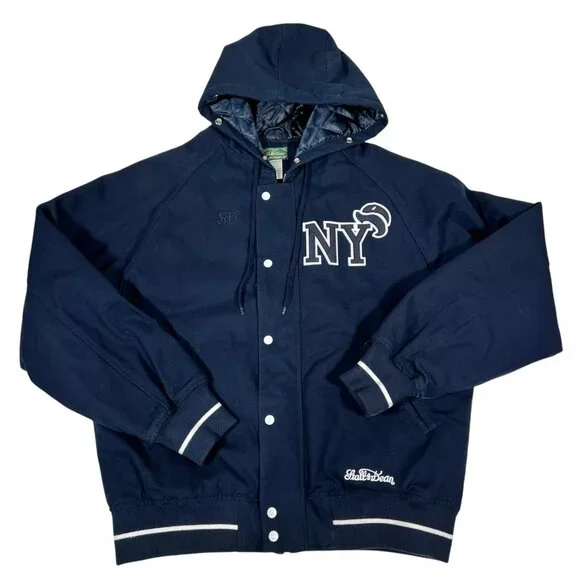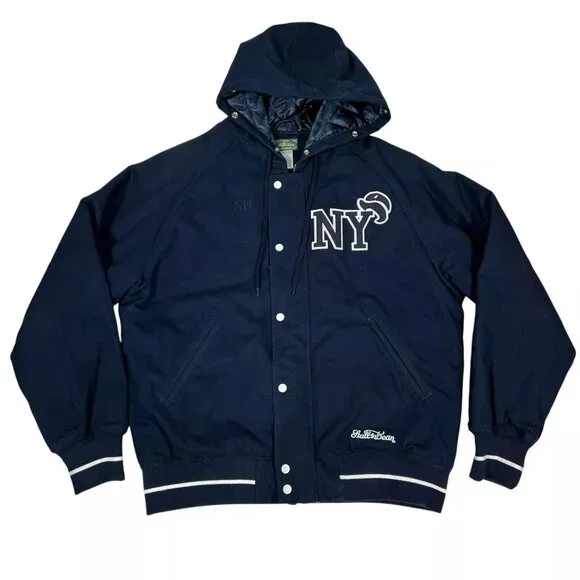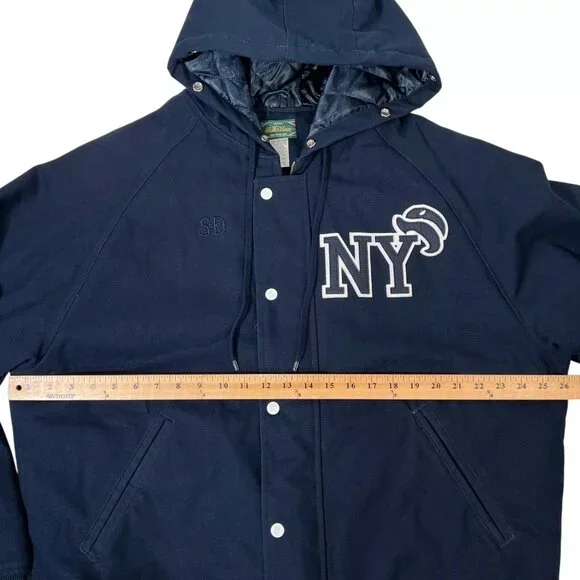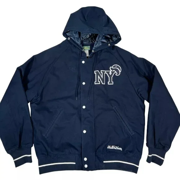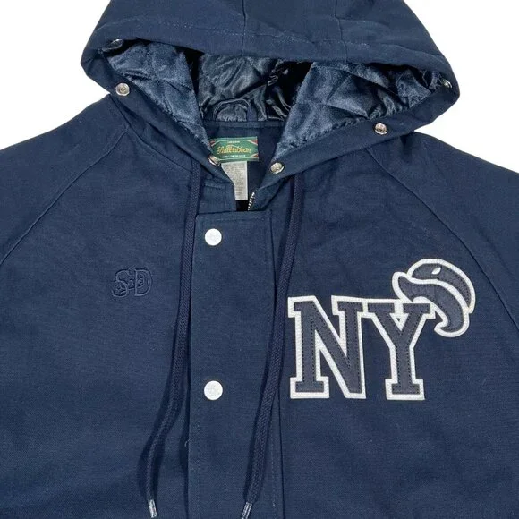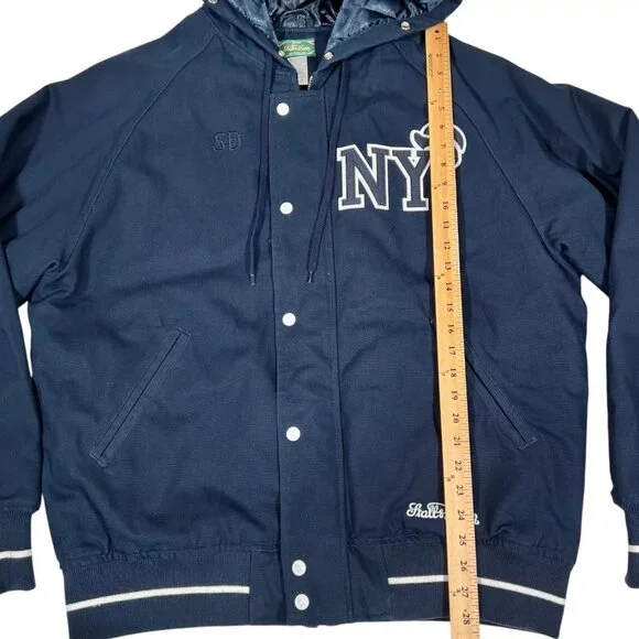 Stall & Dean Mens Blue Black Yankees Embroidered Hooded Varsity Jacket Size XLPre owned Good condition Has some mark from normal use please see photos. Measurements: Chest: 26"Length: 28"Brand: Stall & DeanGender: MenSize: XLType: JacketStyle: Varsity JacketColor: BluePlease Review Photos as part of the Item Description and Full Details We Attempt to Provide As Detailed Pictures As PossibleWe Welcome all questions regarding the item, Shipping or FeedbackWe Ship Our Orders Same or Next Business Day to Provide the Fastest Possible Shipping TimeReview our Feedback Buy With Confidence Thank You For Looking