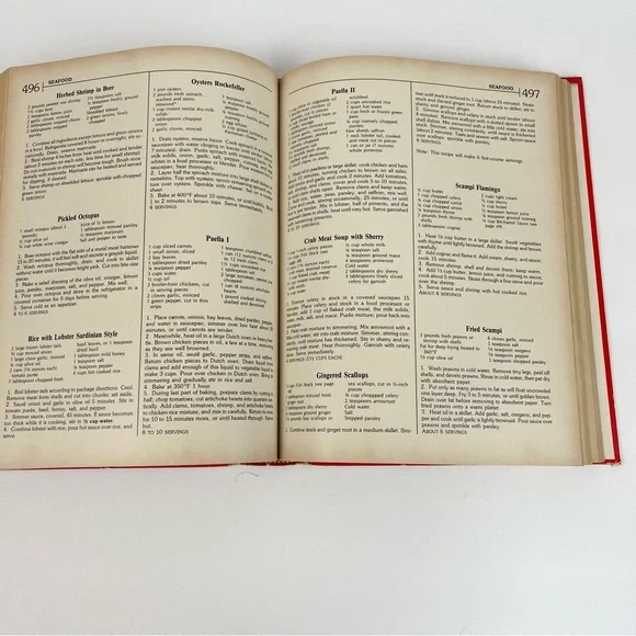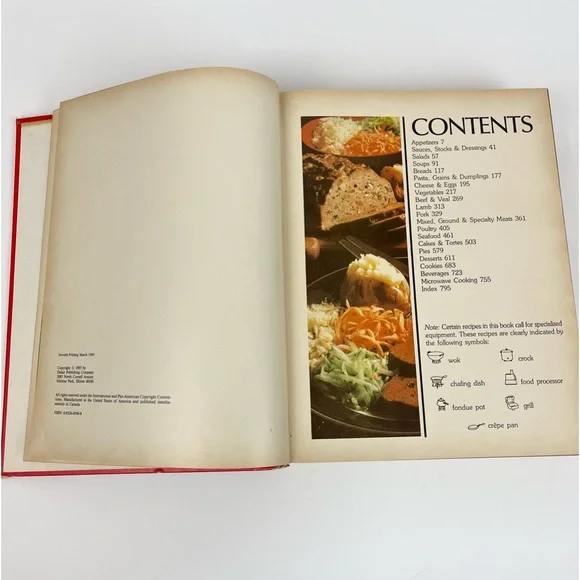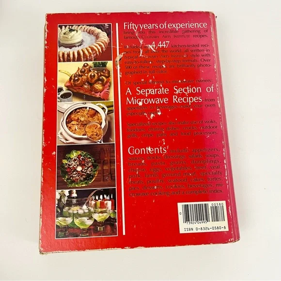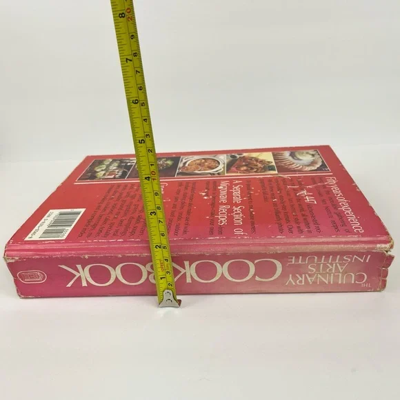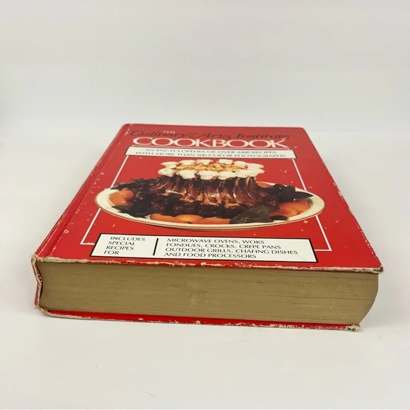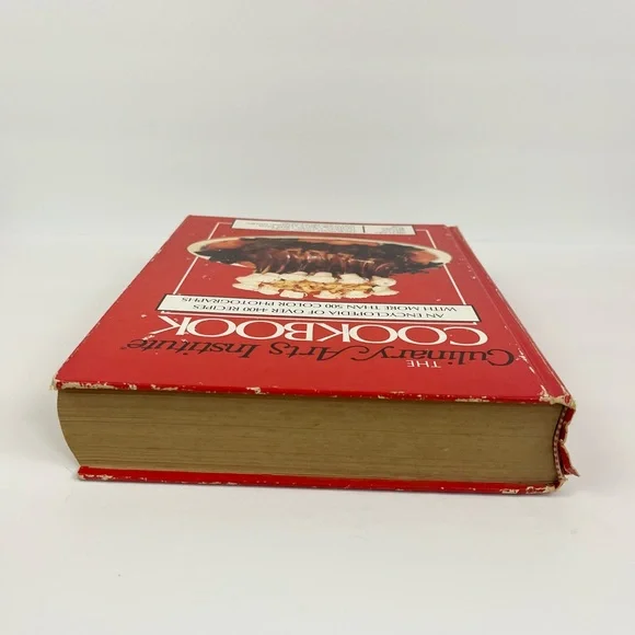 The Culinary Arts Institution Cook Book 1989 Encyclopedia of Over 4400 Recipes Hardback bookUsed vintage condition with some wear and fading to the outside as well as some discoloration to the pages as shown in photosContains more than 500 color photographsRecipes for Appetizers SaladsSoupsBreadsPastaSeafoodMixed specialty meats Vegetables Sauces, stocks, and dumpyMicrowave cooking And much moreThick heavy bookPlease see all photos as they are part of the description Feel free to contact us with any questionsCan not be combined with other items due to the weight of this itemWS2
